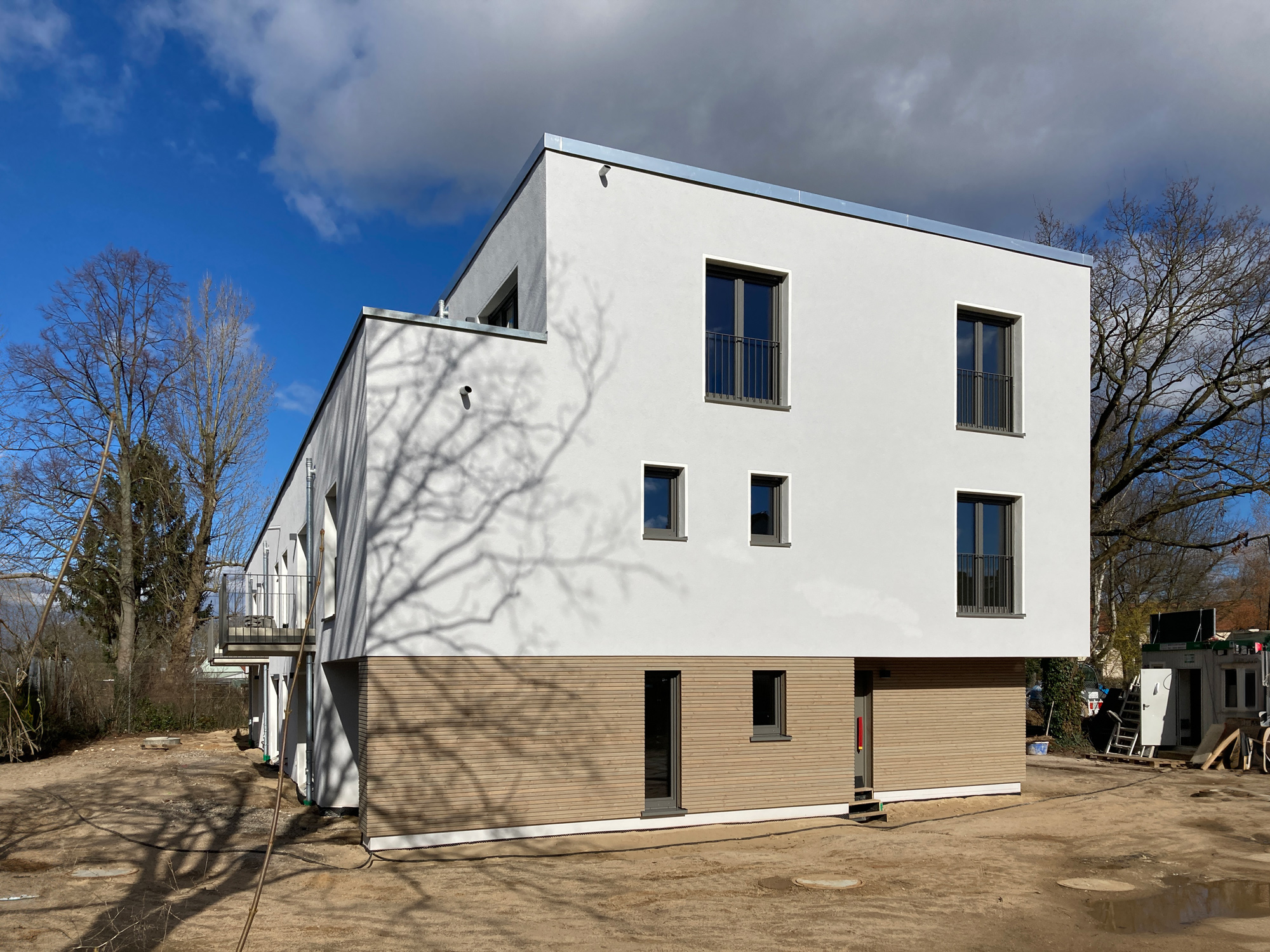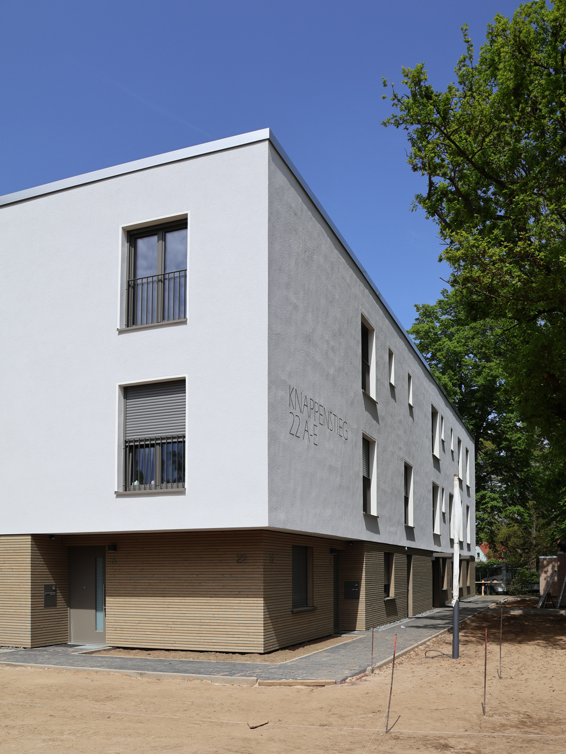 Auf dem Grundstück am Knappenstieg entstanden 12 Wohnungen mit zwei bis vier Zimmern, wovon zwei als Maisonetten ausgeführt sind. Die meisten Wohnungen wurden bereits von ihren MieterInnen bezogen. Jetzt müssen nur noch die Außenanlagen fertiggestellt werden.